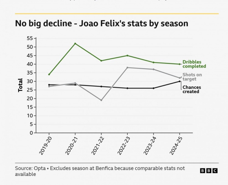 离开本菲卡之后,菲利克斯的劳动生活趋于庸碌