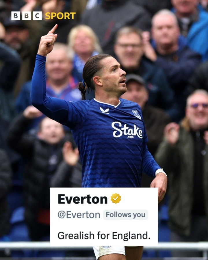 赛后,埃弗顿官方更新了俱乐部官方社媒的简介,惟一浅薄三个单词,意为“格拉利什代表英格兰队”。赫然是对格拉利什近期落第英格兰队大名单的回话。