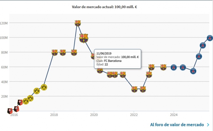 登贝莱身价最低时唯有3000万欧,前次身价达到1亿欧元,还要追思到2019年服从于巴萨时辰。