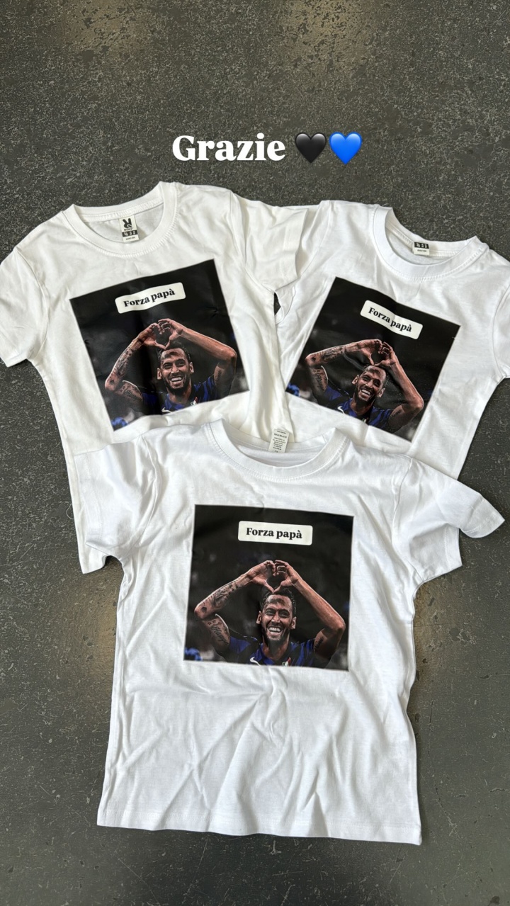 恰尔汗奥卢的第三个孩子于2023年竖立,相片上的三件小码T恤对应着恰尔汗奥卢的三个孩子,同期T恤上宅心大利语写着“爸爸加油”,配图是恰尔汗奥卢身穿国米球衣时手比爱心。
