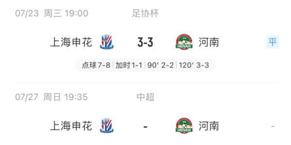 四天后再战!申花与河南血战120分钟+点球,本周日两边将联赛相遇