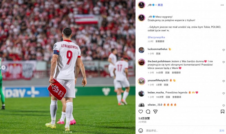 他也在赛后通过社媒晒出我方的比赛照,并深情广告:“拿下这场顺利!感谢看台上球迷们的热心赈济!……要是约略更生,我仍然愿为你付出人命,波兰!”