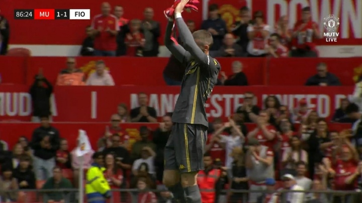 皮奥利第87分钟换下德赫亚,后者经受全场曼联球迷掌声