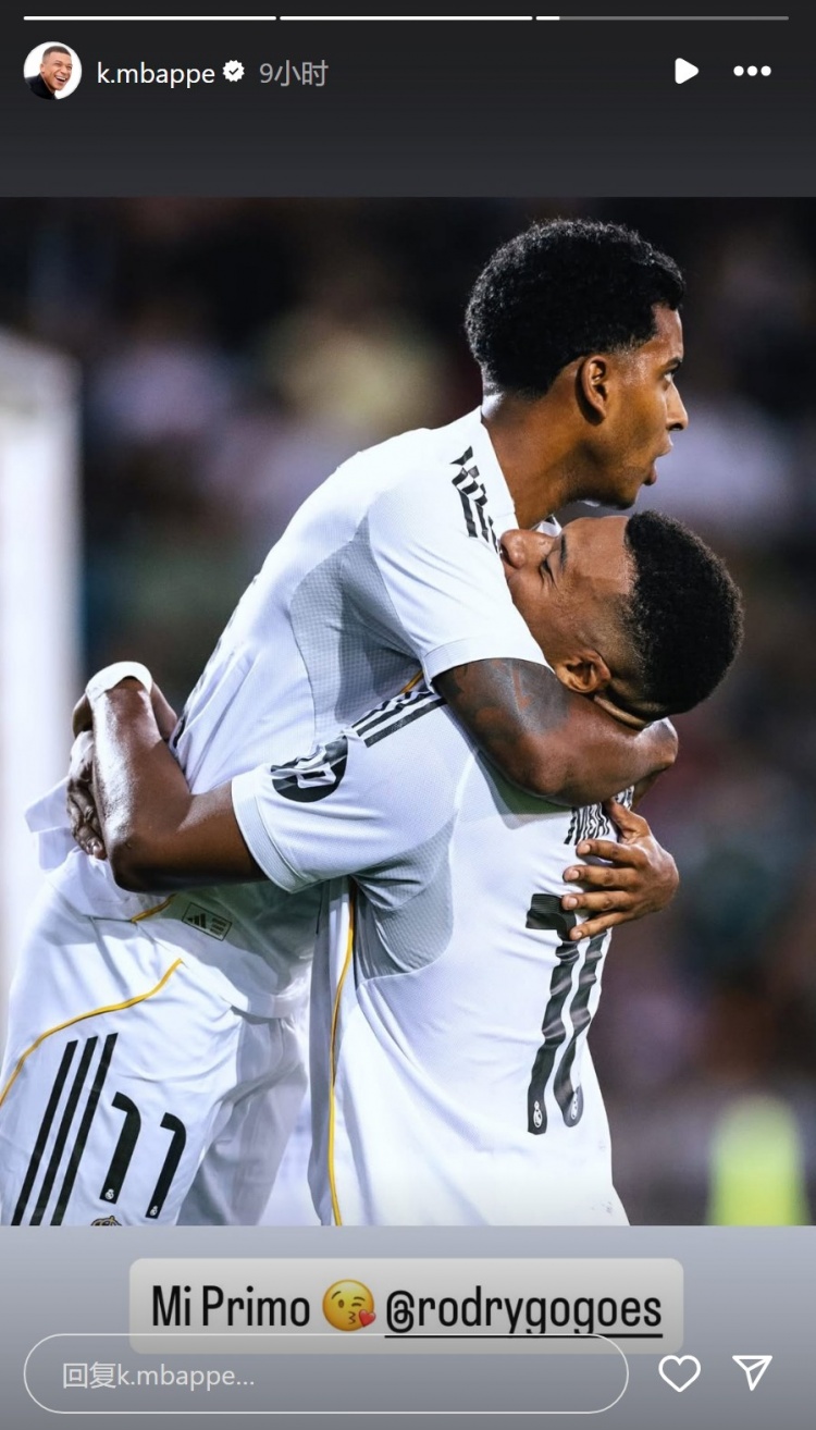 此役姆巴佩2射1传,助攻罗德里戈破门。姆巴佩在酬酢媒体上晒出庆祝时抱起罗德里戈的像片,配文:“我的昆季。”
