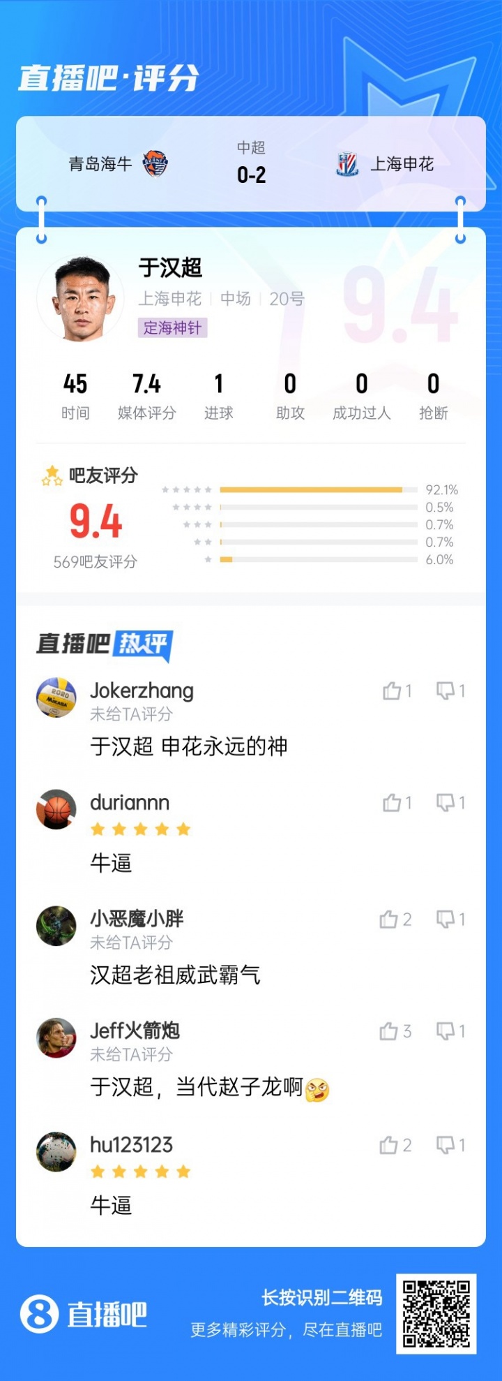 【】中超第六轮最好球员:38岁于汉超当选,哲学无需多言!