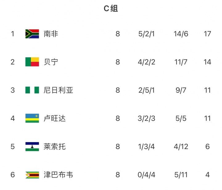 南非队当今排行非洲区C组第一,在被判负后将被扣3分,少5粒净胜球,掉至C组第二。