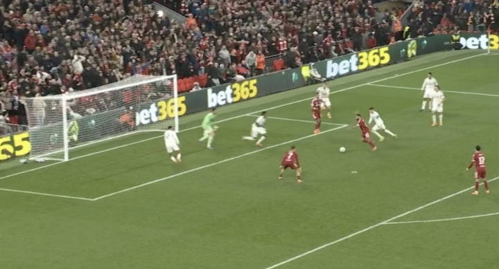 有球迷珍摄萨拉赫:“皮球在空中,后有格瓦迪奥尔前有多纳鲁马,你合计萨拉赫能完成横传吗?”