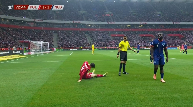 11月15日讯 波兰vs荷兰第74分钟,莱万在争抢时受伤,获胜坐下了,但暂时莫得换东谈主。