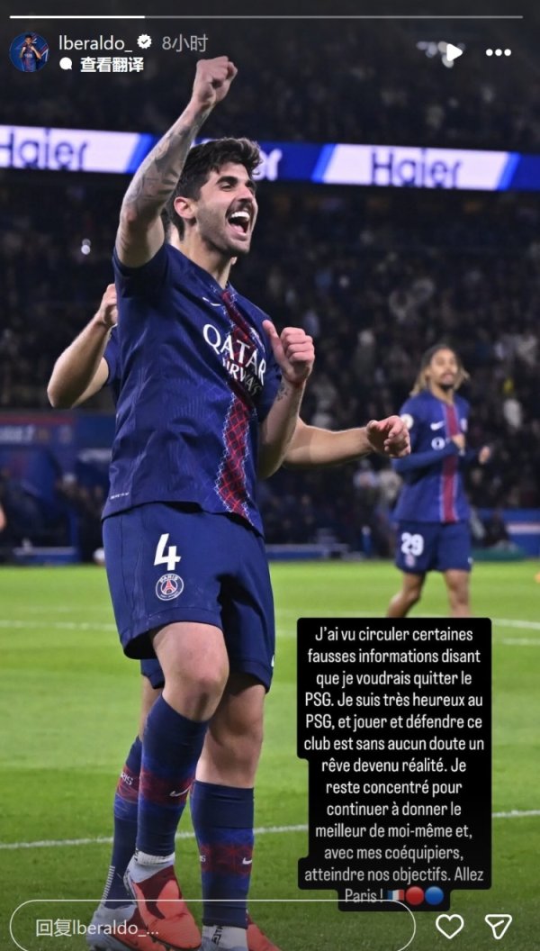 贝拉尔多辟谣离队据说:我在巴黎很振作,将专注于杀青咱们的成见