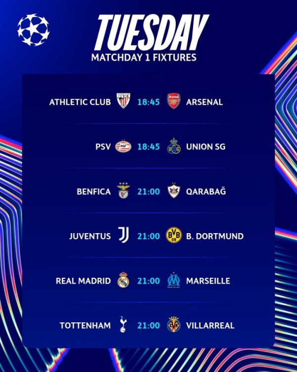 新赛季欧冠来了🔥枪手早场战毕巴 皇马迎马赛 热刺尤文多了得战