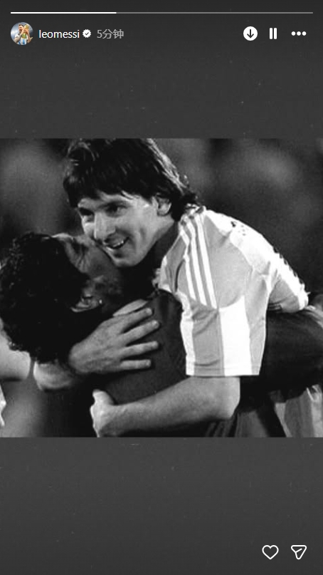 五年了🕯梅西社媒晒出与马拉多纳拥抱照,吊问老马牺牲5年