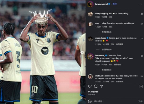 巴萨新10号!亚马尔更新社媒,p图为我方带上王冠👑
