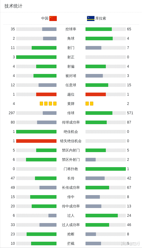 但是这场赛事 在中国队打进第二个球之后,库拉索一度发起了疯狂反扑,一度压制了中国队!但是65%的盘带时间 背后是全场只有7脚射球 ,以及惨淡的0射正,也同样能够说明,这支库拉索面对国足的防卫 无可奈何!