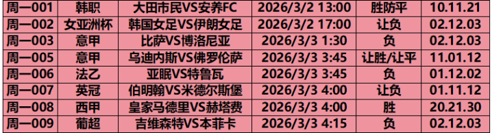 皇家马德里球队主场统治力顶级,争冠战意拉满,即便核心伤停,阵容深度依旧充足,维尼修斯的火热状态足以支撑进攻端,加上对赫塔费的历史交锋碾压,大概率主场拿下胜利,缩小与榜首巴萨的分差;