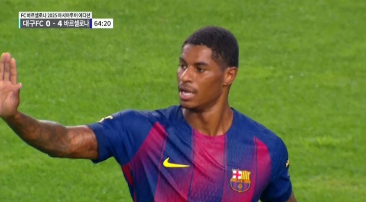 比赛第65分钟,埃里克-加西亚右路横敲,拉什福德迎球推射破门,斩获加盟巴萨后首粒进球,巴萨5-0普及大邱FC。