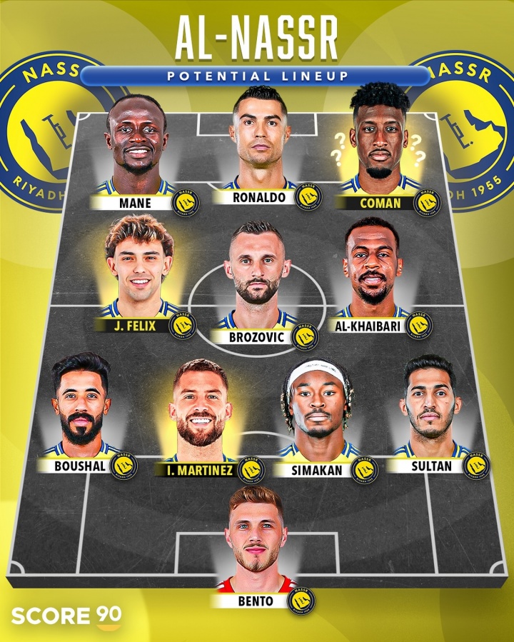 和眉月碰一碰!得手新赛季首发:C罗+马内+科曼+菲利克斯+伊尼戈