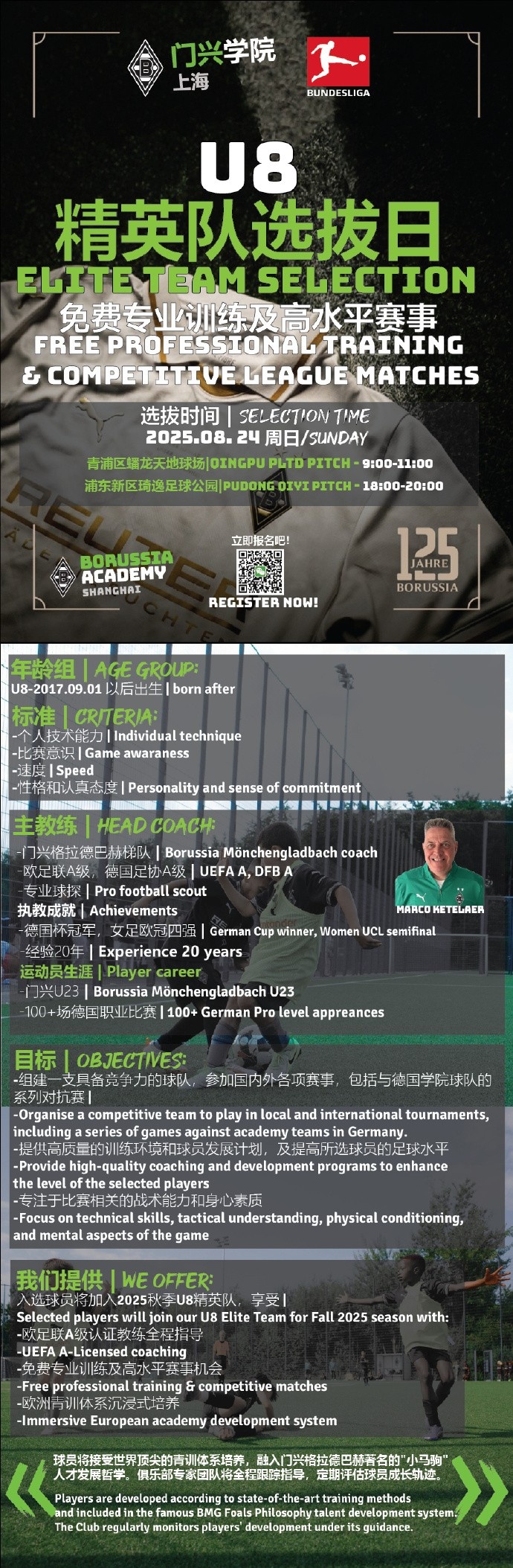 官方:门兴上海学院招募U8精英队,入选小球员装备&锻练费全免