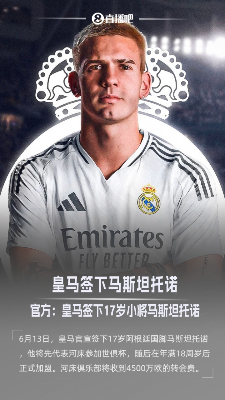 皇马今夏从河床签下17岁阿根廷袭击手马斯坦托诺,球员将不才个月年满18岁。