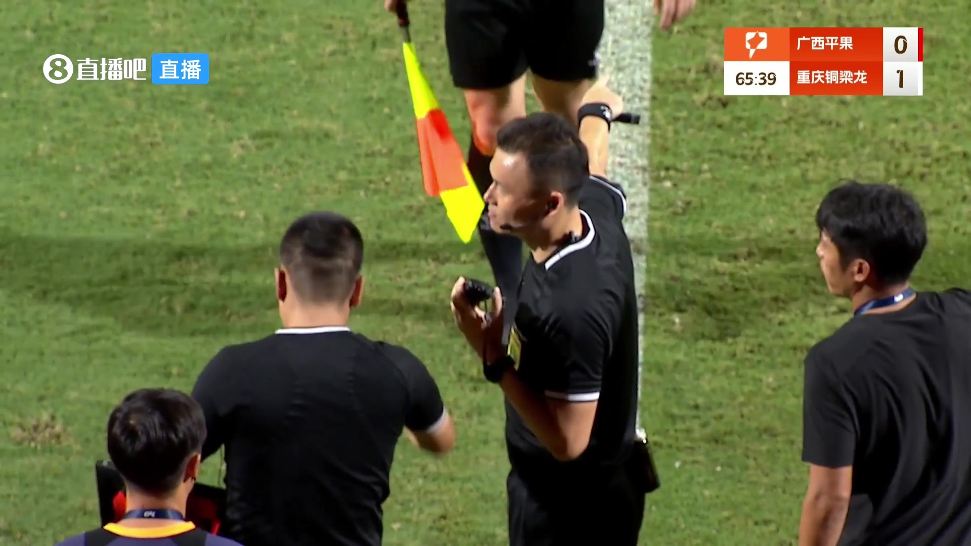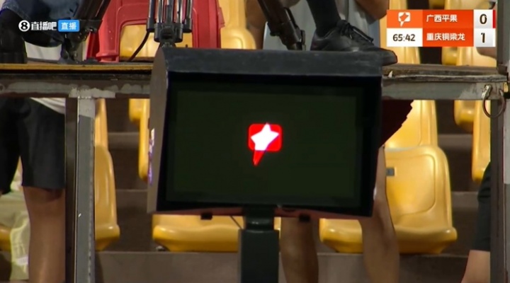 此时现场字幕给出VAR介入了这次判罚,可能要判给广西点球,然则现场事故不断。