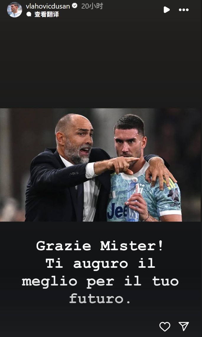10月29日讯 尤文照旧官方文告解老板帅图多尔,中锋弗拉霍维奇在近日通过社媒向其告别。