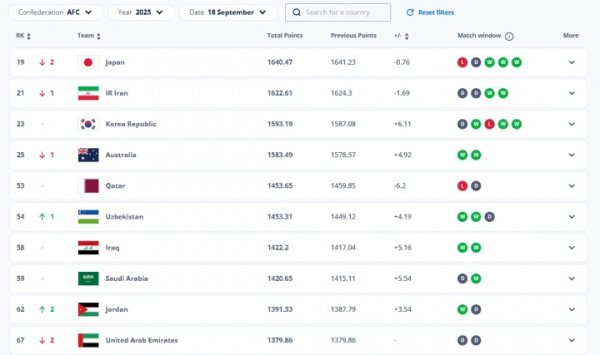 恰当名次无未必!FIFA亚洲前十:8队纵贯天下杯,剩余2队踢附加赛