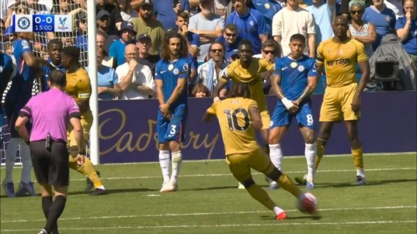英超官方解说水晶宫进球被吹:射门时格伊距驻扎方东说念主墙不及一米