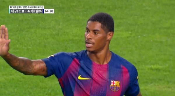 终于来了!拉什福德迎球推射斩获加盟后首球,巴萨5-0普及大邱FC