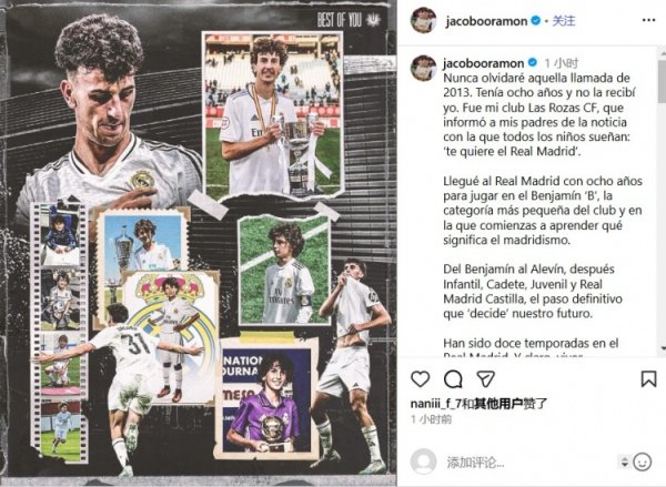 8月1日讯 皇马小将雅各布-拉蒙加盟科莫,他将会小心甲考验我方。在外交媒体上,拉蒙向皇马进行了告别。 拉蒙写谈:我恒久齐不会健忘2013年的那通电话,其时我惟一8岁,电话并不是我接的。我场所的俱乐部Las Rozas CF向我父母示知了一个通盘孩子齐心荡神驰的音问,那即是皇马思要得回我。 我8岁就加盟了皇马,启航点在Benjamín B队踢球,这是俱乐部年岁最小的梯队,亦然在这里我开动了解什么是“马德里方针”。从Benjamín B队到 Alevín队,再到Cadete队、后......查看更多