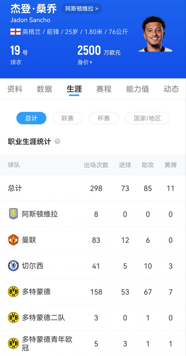 11月23日讯 《镜报》独家报说念称,当今被曼联外租至维拉的桑乔将来有望再度加盟多特,他们热衷于第3次签下他(2017年从曼城梯队买入、2024年冬窗租出),但需要球员进行大幅降薪。