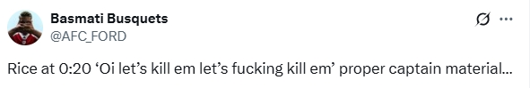 阿森纳4-1打败热刺笑傲北伦敦德比,在太空体育赛后晒出的比赛镜头中,不少球迷在视频里听到了赖斯在球队进球后的一次喊话。