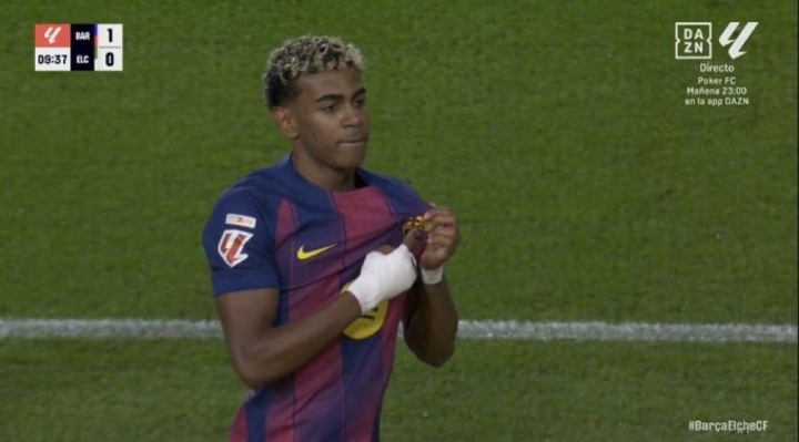 变嫌来了?亚马尔一改此前“加冕”形状,进球后亮队徽和队友庆祝