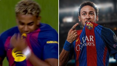 有球迷指出,亚马尔此举或是在请安其偶像/前辈,内马尔此前的庆祝形状。而本赛季早些技巧,亚马尔在进球后作念出的是“加冕为王”,为我方带上金冠的庆祝看成,有报谈称这是对体坛另一位神话勒布朗-詹姆斯的请安,也展示着亚马尔成为足坛新王的贪念。