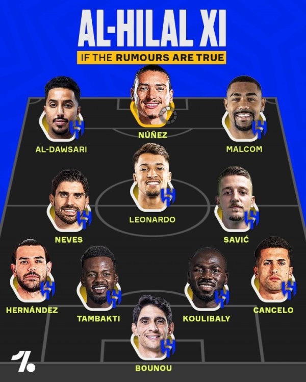 亚洲横着走!利雅得月牙潜在首发:努涅斯+内维斯+特奥+坎塞洛…