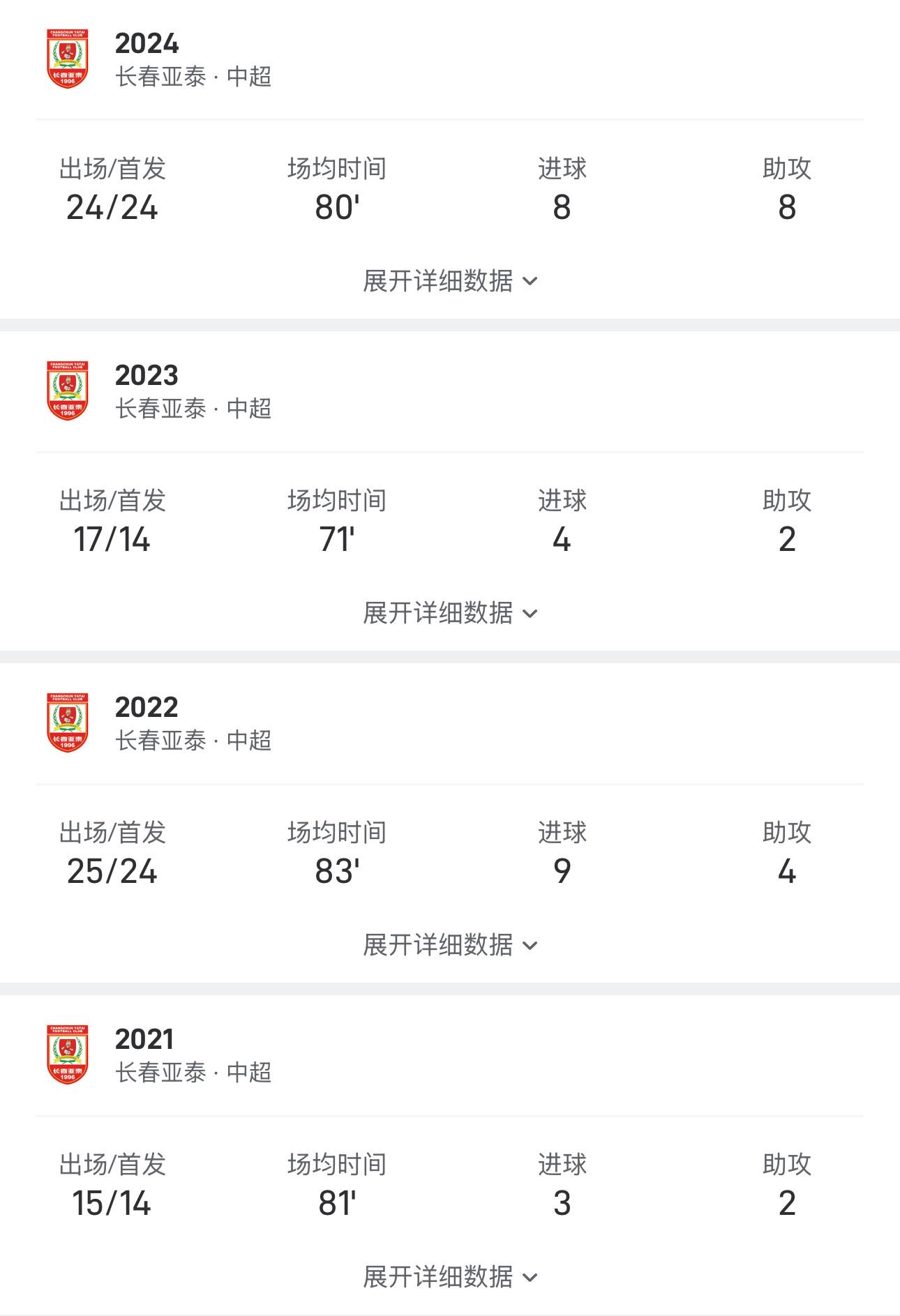 此前,在2021赛季至2024赛季,塞尔吉尼奥共代表长春亚泰出战81场中超联赛,孝顺24粒进球和16次助攻。
