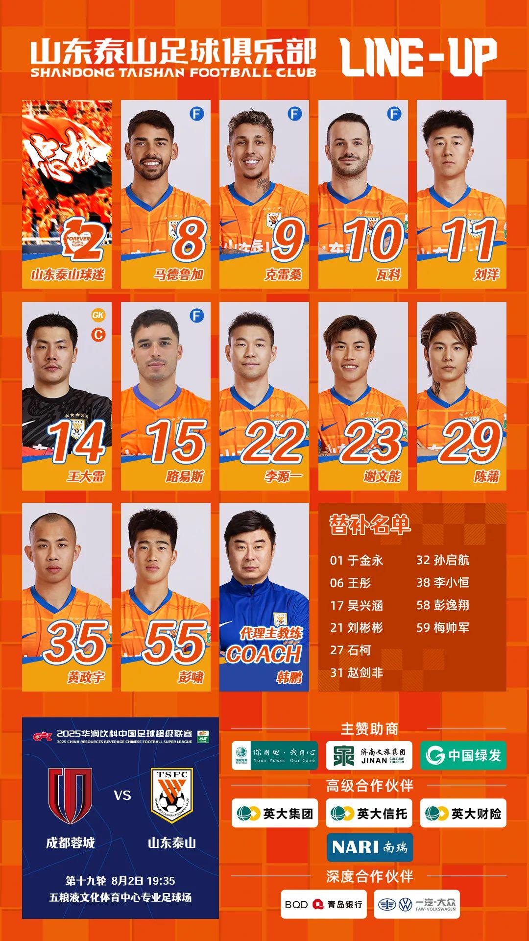8月2日晚,2025中超第19轮山东泰山队客场挑战成齐蓉城队。本场比赛,李小恒与彭逸翔替补登场,完成个东谈主中超联赛首秀。最终,经由90分钟激战,山东泰山队客场1-2成齐蓉城队。