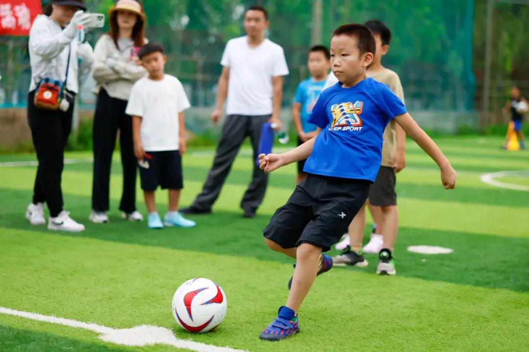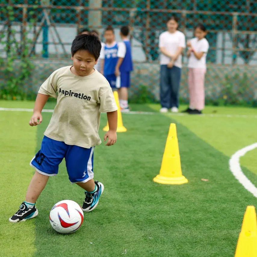 在绕桩跑花式中,小一又友们在3米远离的桩间带着球穿梭奔走,看似微小的足球却倏得“不听话”了起来,小一又友们每一次告捷跑回皆能收货一阵饱读吹。“慢点毋庸惊愕!”“跑得可以!”“踢球不要用太恣意气”傍边不雅看的家长和使命主说念主员皆耐性性匡助孩子们尽快掌抓带球妙技,关于大部分小一又友来说,在绿茵场上奔走的这段时辰,成为他们的足球发蒙。
